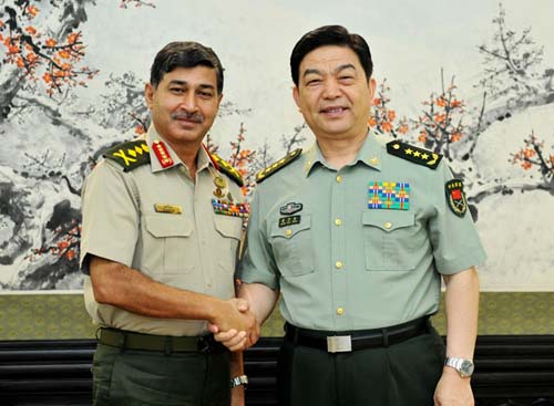 বাংলাদেশের স্থলবাহিনীর স্টাফ প্রধান ইকবাল করিম ভূঁইয়া আর চীনের প্রতিরক্ষা মন্ত্রি ছাং ওয়ান ছুয়ান