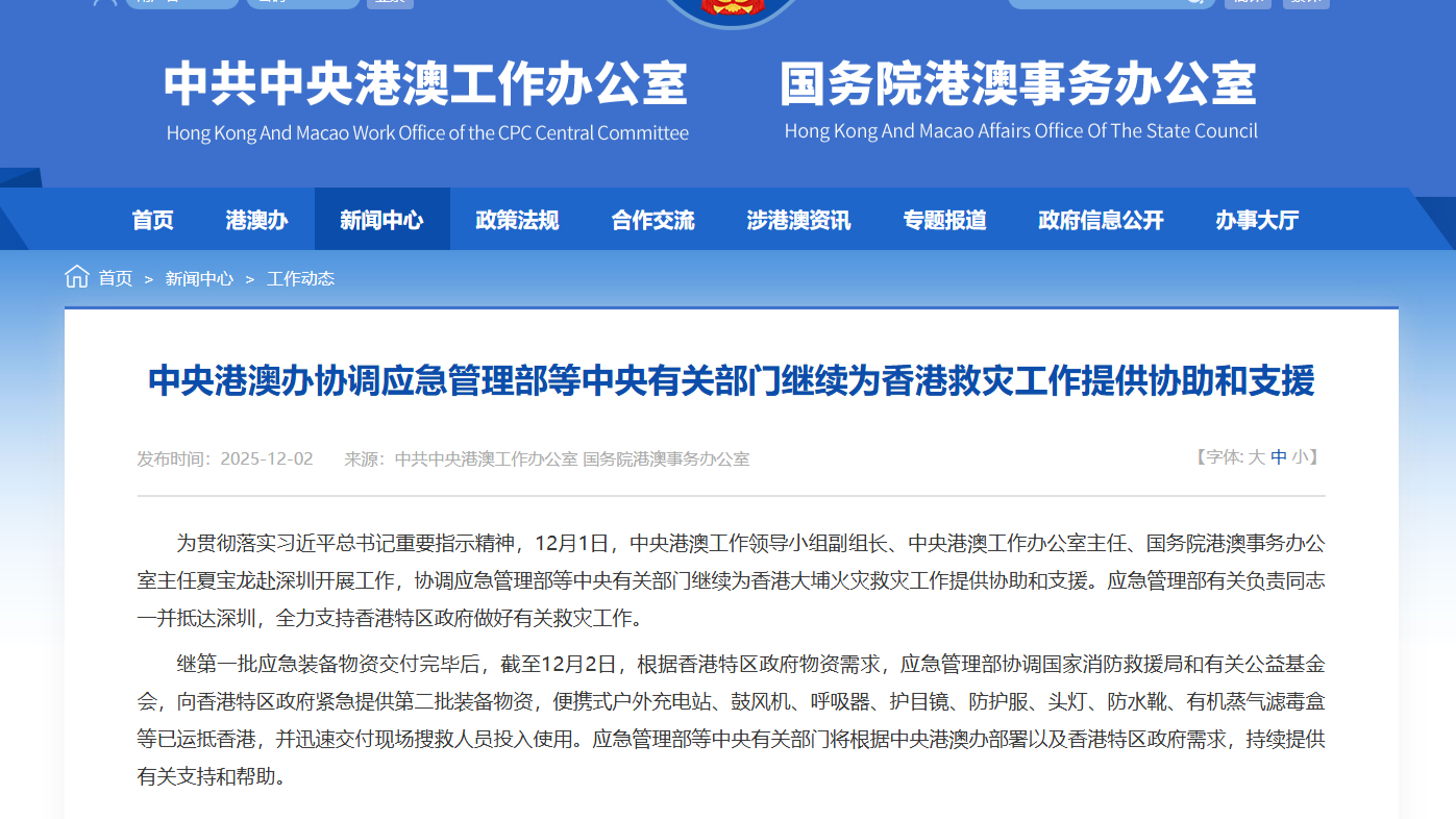 হংকংয়ের অগ্নিকাণ্ডে কেন্দ্রীয় সরকারের অব্যাহত সহায়তা