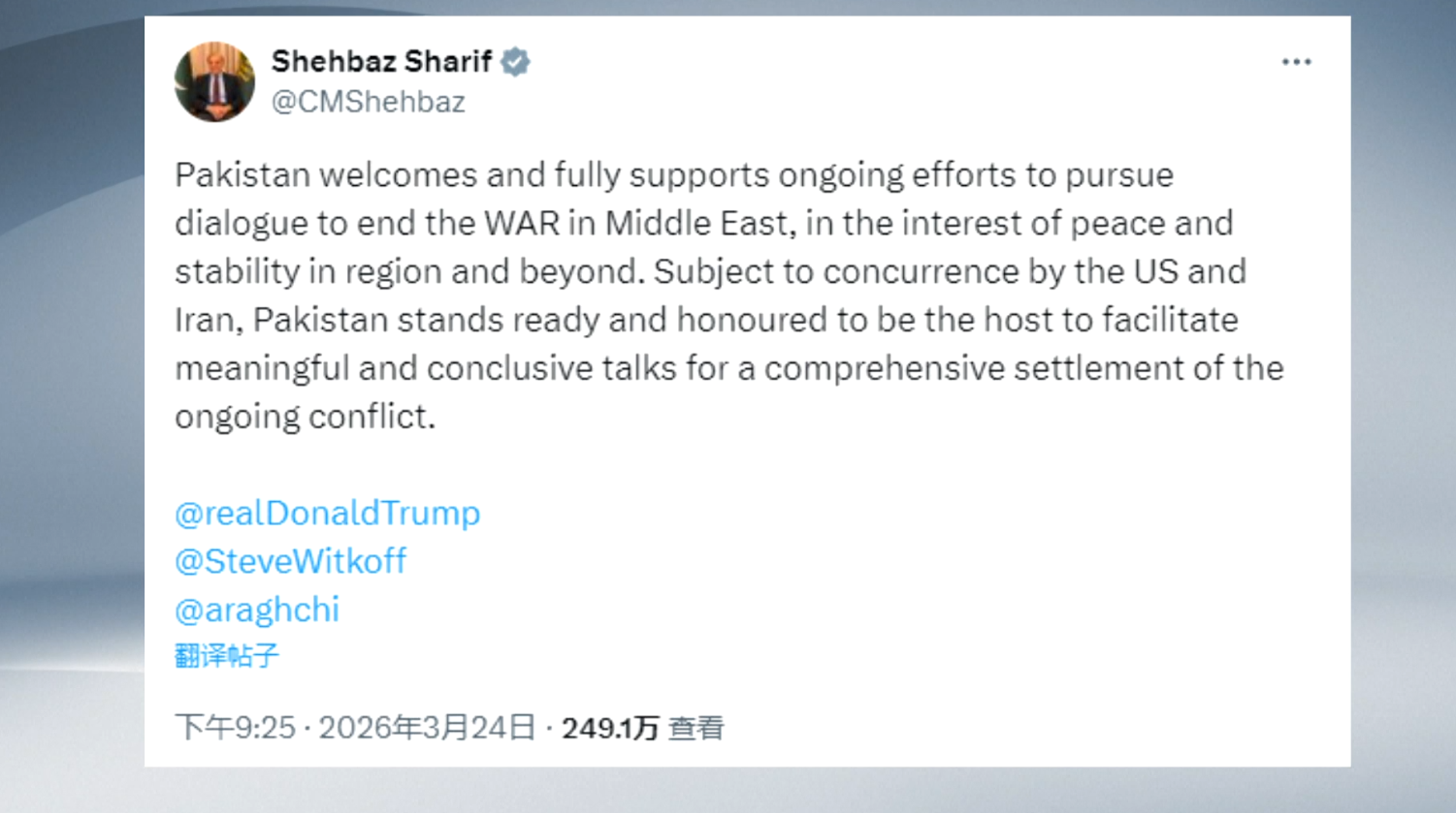 মধ্যপ্রাচ্য সংকটে আলোচনা আয়োজনে য় স্বাগতিক হতে প্রস্তুত পাকিস্তান